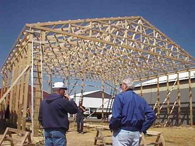 This is a pole barn type construction with treated poles on 4 ft centers.