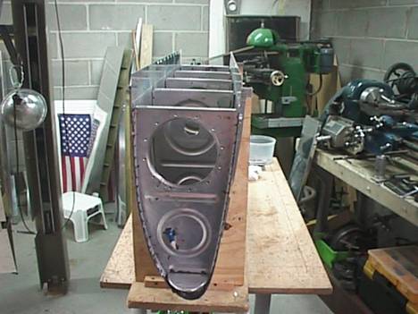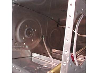 The left tank has been built with a flop tube to allow inverted operation. This shot shows the tube installed with the modifications to the inside rib and anti-hang devices. It is complete except for the rear baffle.
