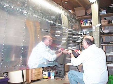 Here I am drilling the top inboard skin. The leading edge has been riveted and the tank installed. The outboard skins have not yet been back riveted.